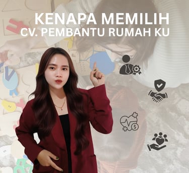 CV. Pembantu Rumahku adalah agen penyalur tenaga kerja rumah tangga yang fokus menyediakan babysitter, asisten rumah tangga, dan penjaga lansia yang profesional, berpengalaman, dan dapat dipercaya.